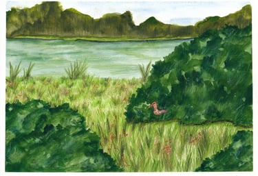 Je suis notamment passionnée par les points d’eau et toute la vie que l’on peut y trouver. Récemment mon travail artistique s’est focalisé sur cet univers foisonnant souvent caché et oublié.