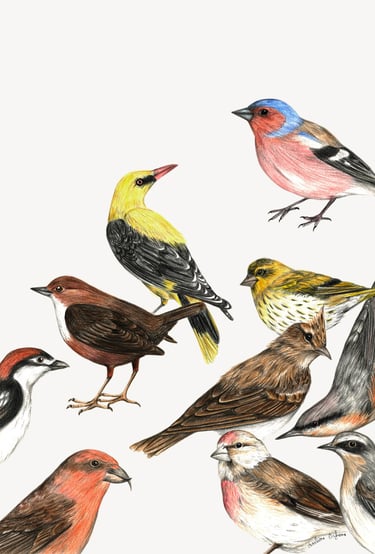 Je m'appelle Charline et je suis artiste. Avec mes crayons de couleurs et l’aquarelle, je réalise des illustrations réalistes inspirées de la nature. Etant ornithologue amatrice mes sujets de prédilections sont les oiseaux. Avec mon travail je cherche à montrer la beauté, la diversité et toutes les couleurs présentes dans la nature. J’aime m’attarder sur les détails et les textures.